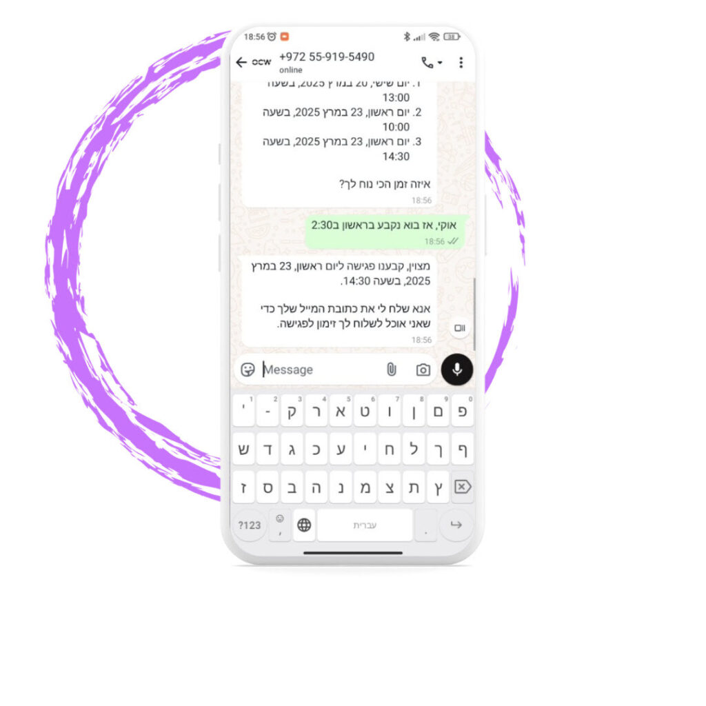 שיודע לטפל בעד 90% מהמטלות שלכם, כולל סינון לידים קרים, קביעת פגישות אוטומטית ומתן מענה מהיר ללקוחות 24/7 – בלי חופשים, בלי תלונות